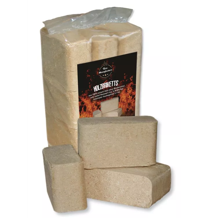 Die Briketts bestehen aus reinem Nadelholz, sind schnell entflammbar und verbrennen nahezu rückstandslos. Damit eignen sie sich ideal für den regelmäßigen Einsatz in Kaminöfen, Kachelöfen und Heizkaminen.